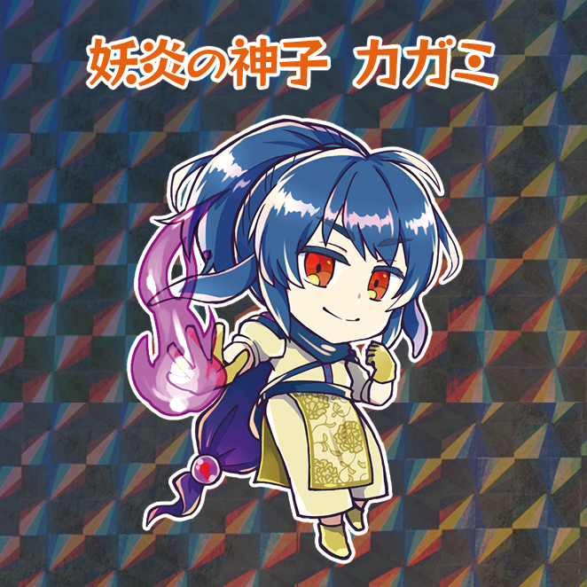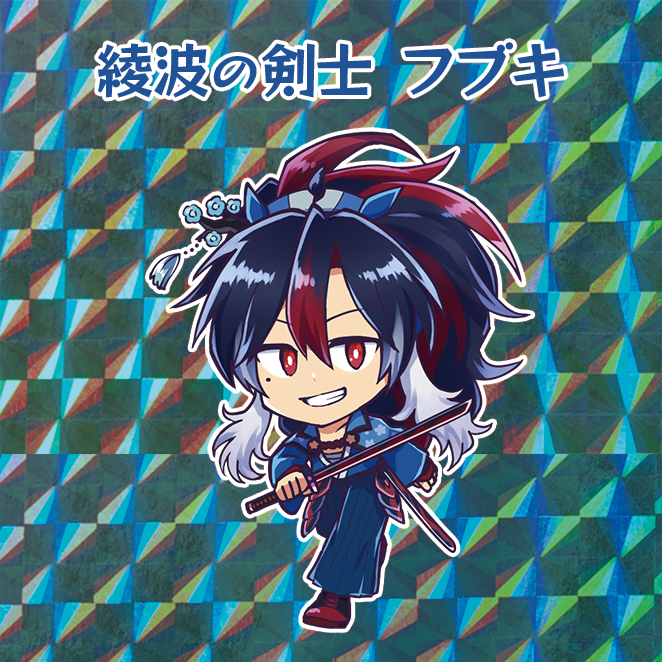 翡翠がpkg世界のいわば「レトロ」なので、ノベルティもある種レトロにしてやろう!と思い、○ックリマンシール風にしてみました(元ネタは現在でも絶賛発売中ですが)。二つ名はそれっぽく、適当につけてみましたが若干チープな感じが味だと思いました。シール用紙は複数種類から選べましたが、迷わず「ホログラムペーパー モザイク」にしました。この手のグッズのホロで一番雰囲気があると思ったので……